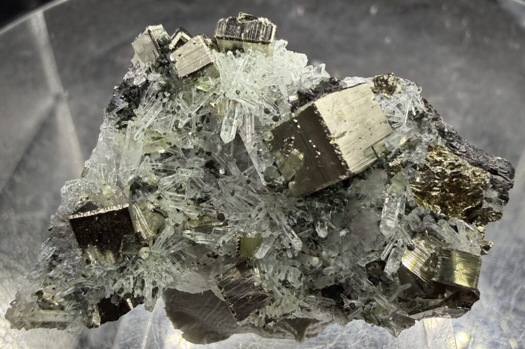 黄鉄鉱はおそらく、特徴的な結晶形態、金属質な輝きが美しく、そして安価に入手できることから蛍石や水晶に次いで多くの鉱物愛好家が最初に手に取り、鉱物としての美しさに魅了される入門のような鉱物ではないでしょうか。かくいう私も幼少のみぎり、(おそらく)スペイン産の立方体の結晶を手に取り、どうしたらこのような四角い結晶ができるのか、など難しいことは考えずにただ、純粋に美しく思っていました。