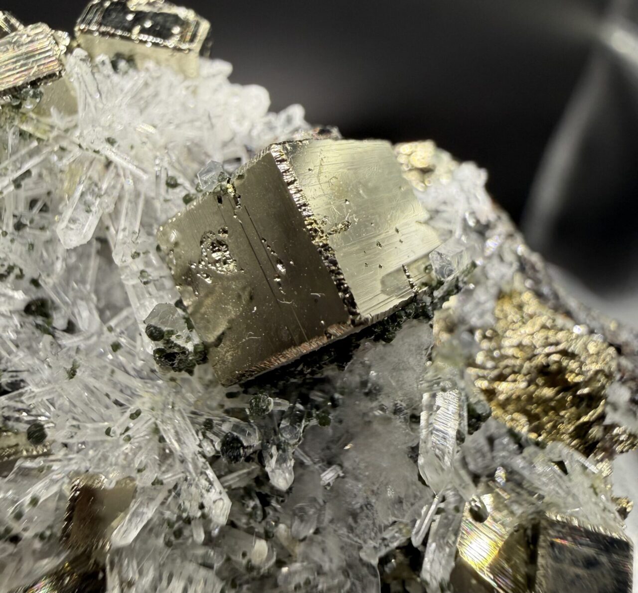 黄鉄鉱はおそらく、特徴的な結晶形態、金属質な輝きが美しく、そして安価に入手できることから蛍石や水晶に次いで多くの鉱物愛好家が最初に手に取り、鉱物としての美しさに魅了される入門のような鉱物ではないでしょうか。かくいう私も幼少のみぎり、(おそらく)スペイン産の立方体の結晶を手に取り、どうしたらこのような四角い結晶ができるのか、など難しいことは考えずにただ、純粋に美しく思っていました。